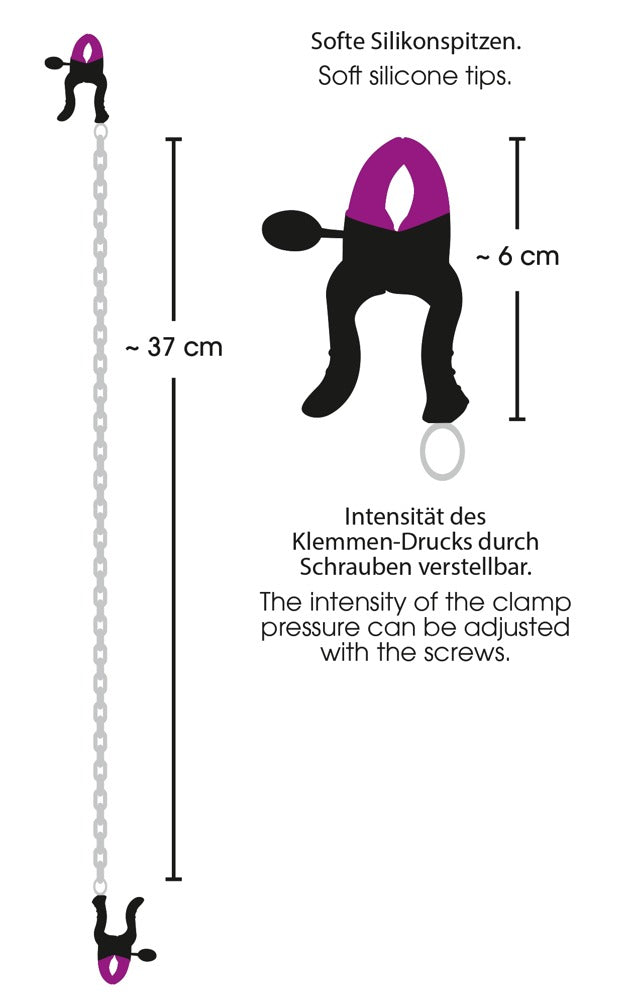 Ideal for spicing up your intimate games, it combines aesthetics and pleasure thanks to its delicate chain and adjustable clamps covered in soft silicone.