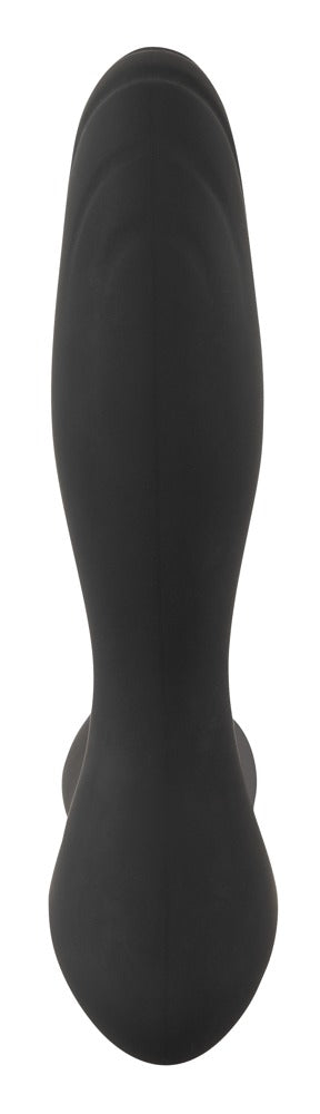 Prostate vibrator with grooved tip and perineum stimulating base.